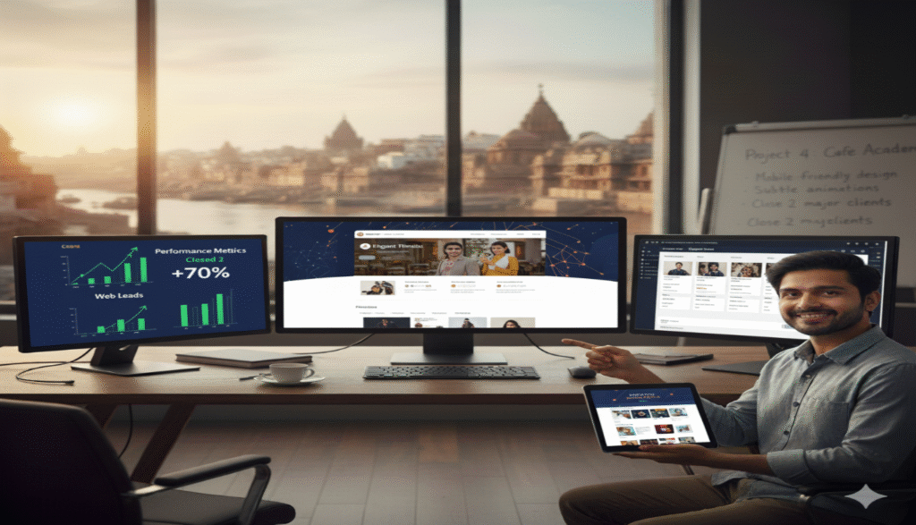 Project 5 – Modern WordPress Website for a Local Brand Client: Elegant Threads, Varanasi Challenge: The client’s old site lacked structure, speed, and a professional look. Solution: I designed a fully responsive WordPress website with smooth navigation and improved SEO performance. Result: Page load speed increased by 70%, and their store started getting consistent web leads within two weeks.